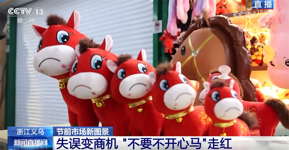 大家仔细看,在这一堆玩偶里,哪个小家伙最特别?来,镜头拉近,没错,就是它!这个看上去有些“委屈”的小家伙,它就是这几天横扫各大社会化媒体热搜,被称为新年第一匹“黑马”文创的“哭哭马”,因为生产线上一个美丽的“失误”,您看,它的嘴角被缝反了,向下撇着,瞬间变成了一张写满故事、委屈巴巴的“哭哭脸”。而买到“哭哭马”的网友把希望换货的聊天记录和图片发到了短视频平台上,结果一下子戳中了大家的笑点和共鸣。网友们纷纷说,看到它,觉得“快乐不会消失,只会转移”;还给它起了个新名字,叫“不要不开心马”,就是这种带着幽默和温暖的解读,让这款原本的“瑕疵品”瞬间引爆了一场抢购热潮。