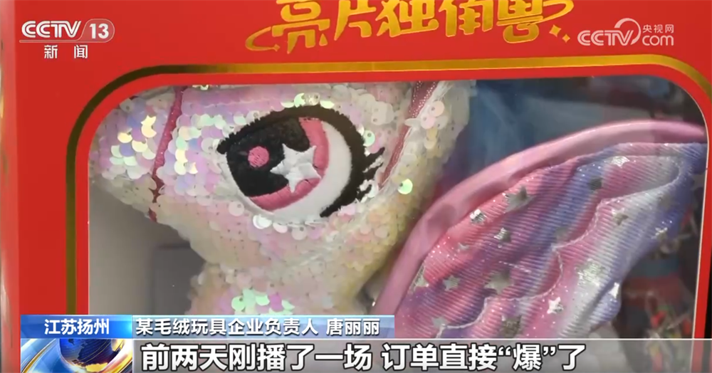 江苏扬州某毛绒玩具企业负责人 唐丽丽:我们也发现马年的产品跟往年比起来真的更热销一点。比如我们最近在做线上直播,前两天刚播了一场,订单直接“爆”了。像这个经典款“飞马”一场直播能出几千单,所以仓库一直忙着打包马年产品。